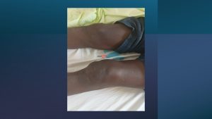 Buba Faye is currently receiving medical care with limited mobility in his right leg and hand.